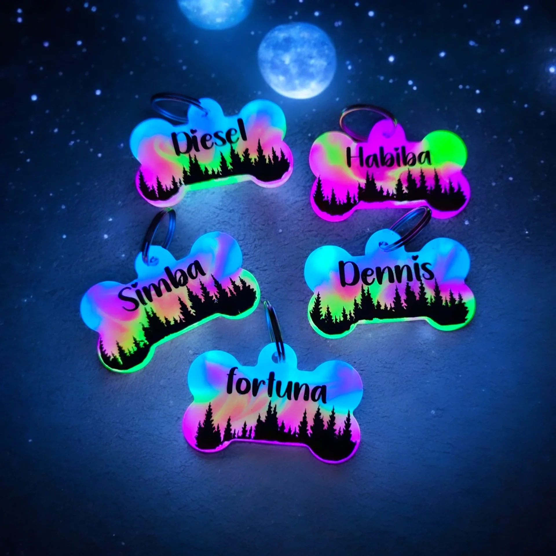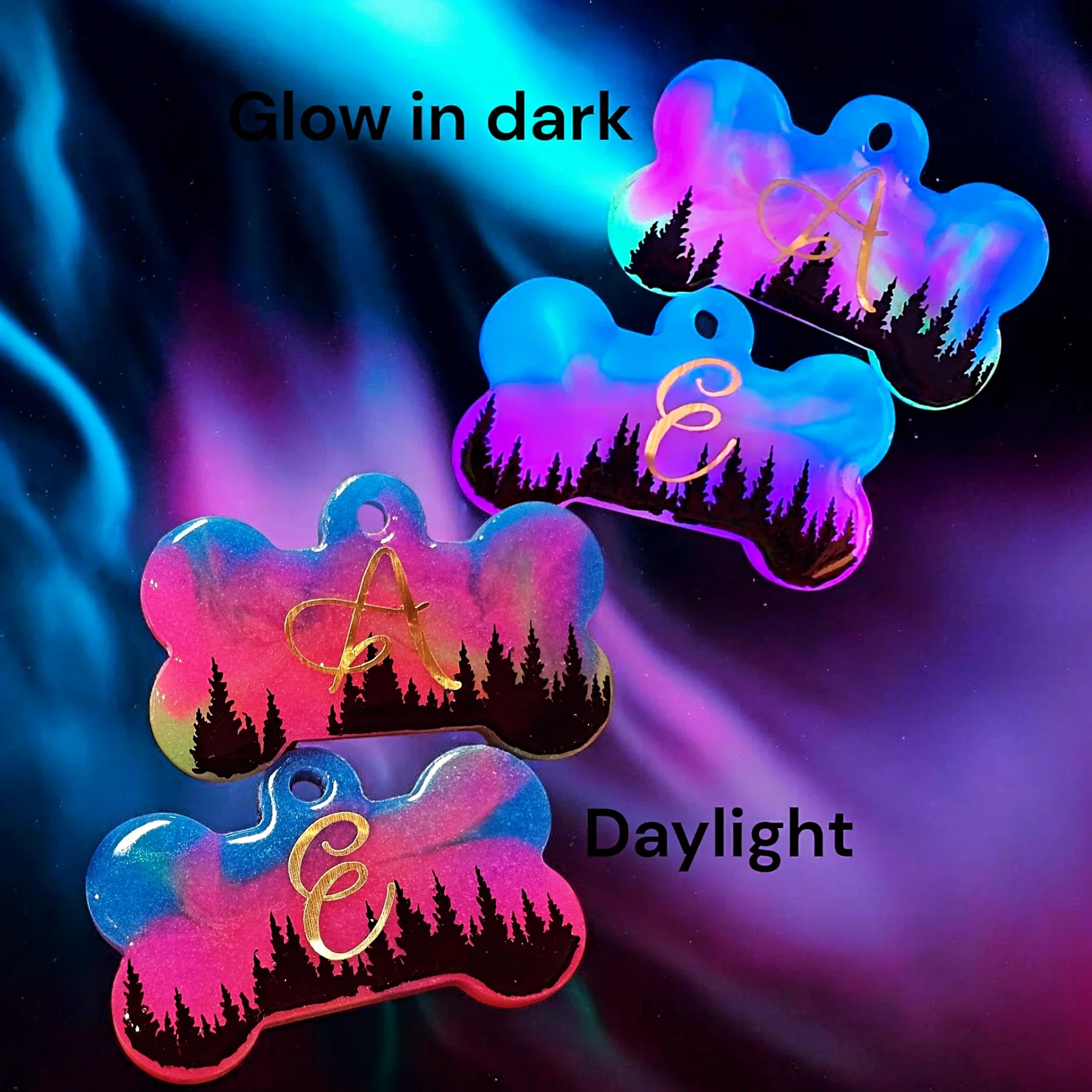 Nordlys Tag med glow in the dark effekt.